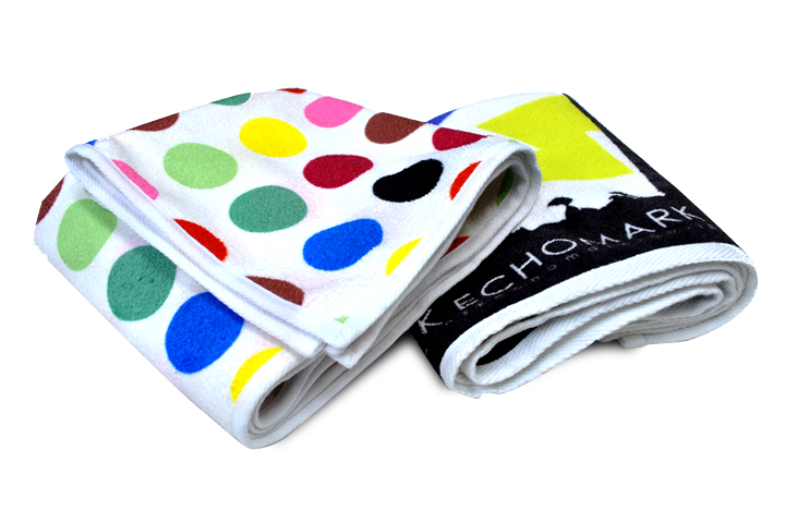 ポリエステル100%のタオル素材(マイクロファイバー)に全面フルカラーで柄を入れることができます。